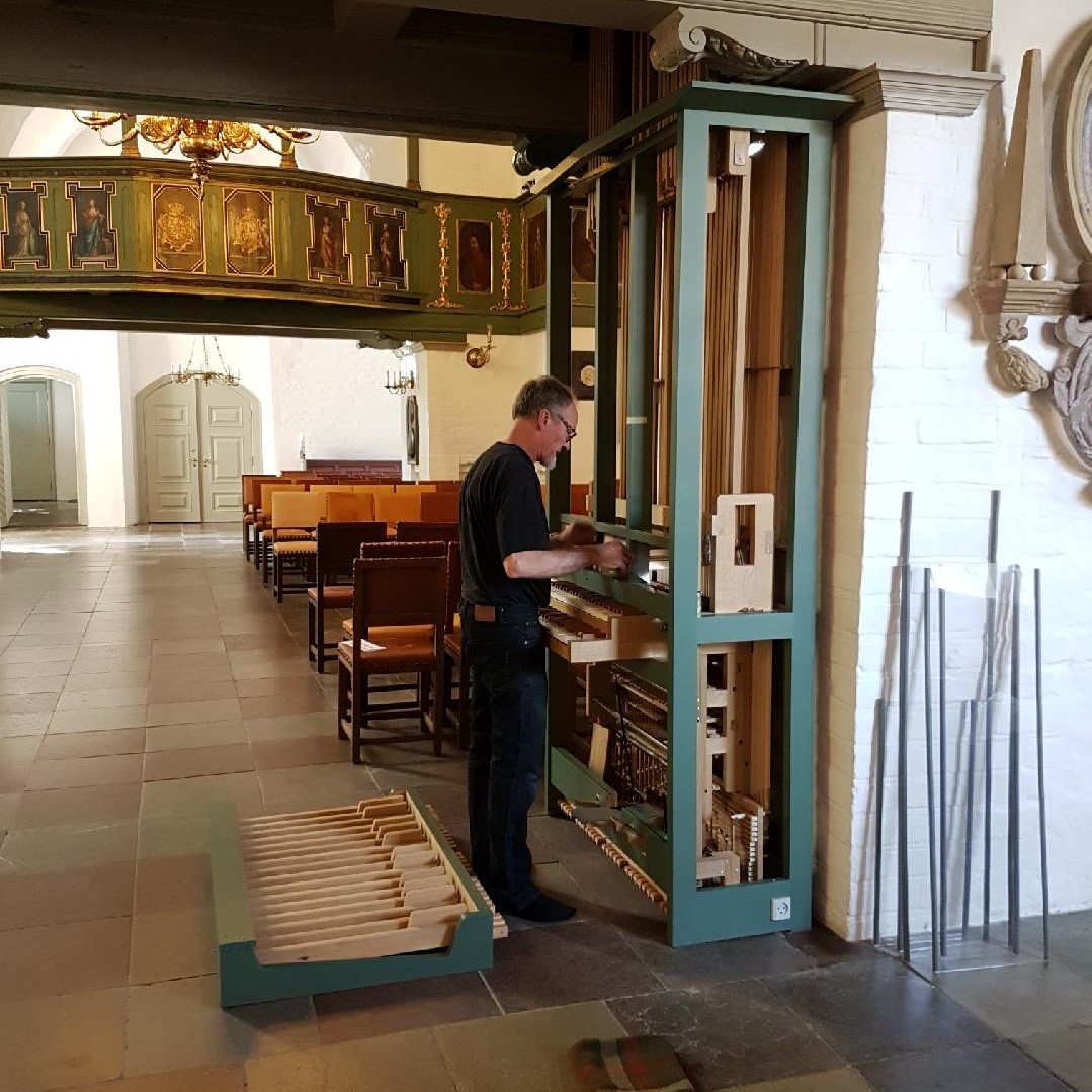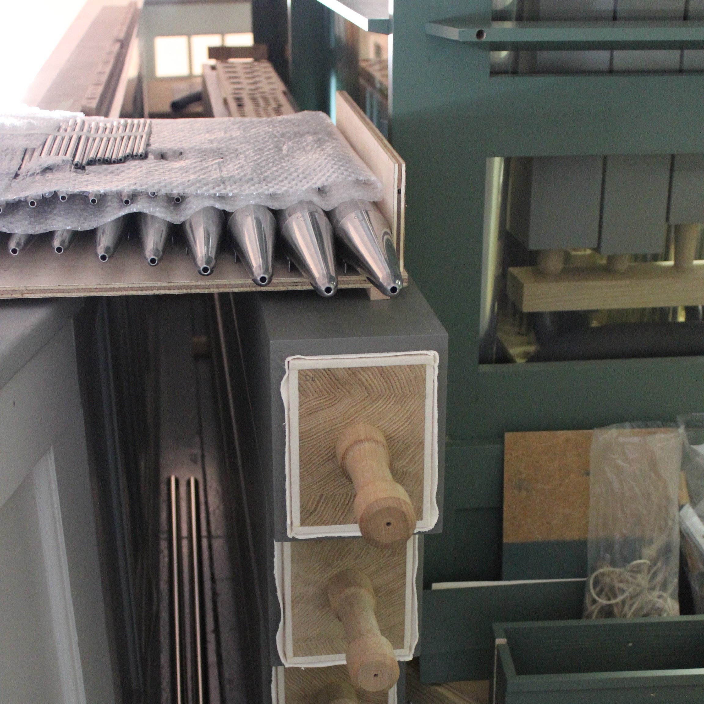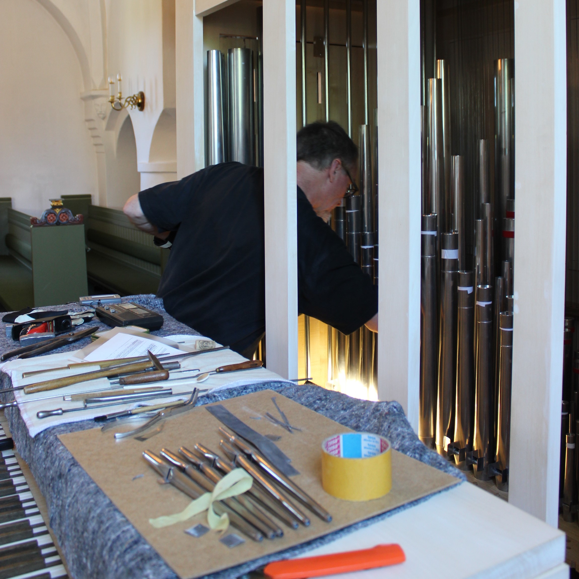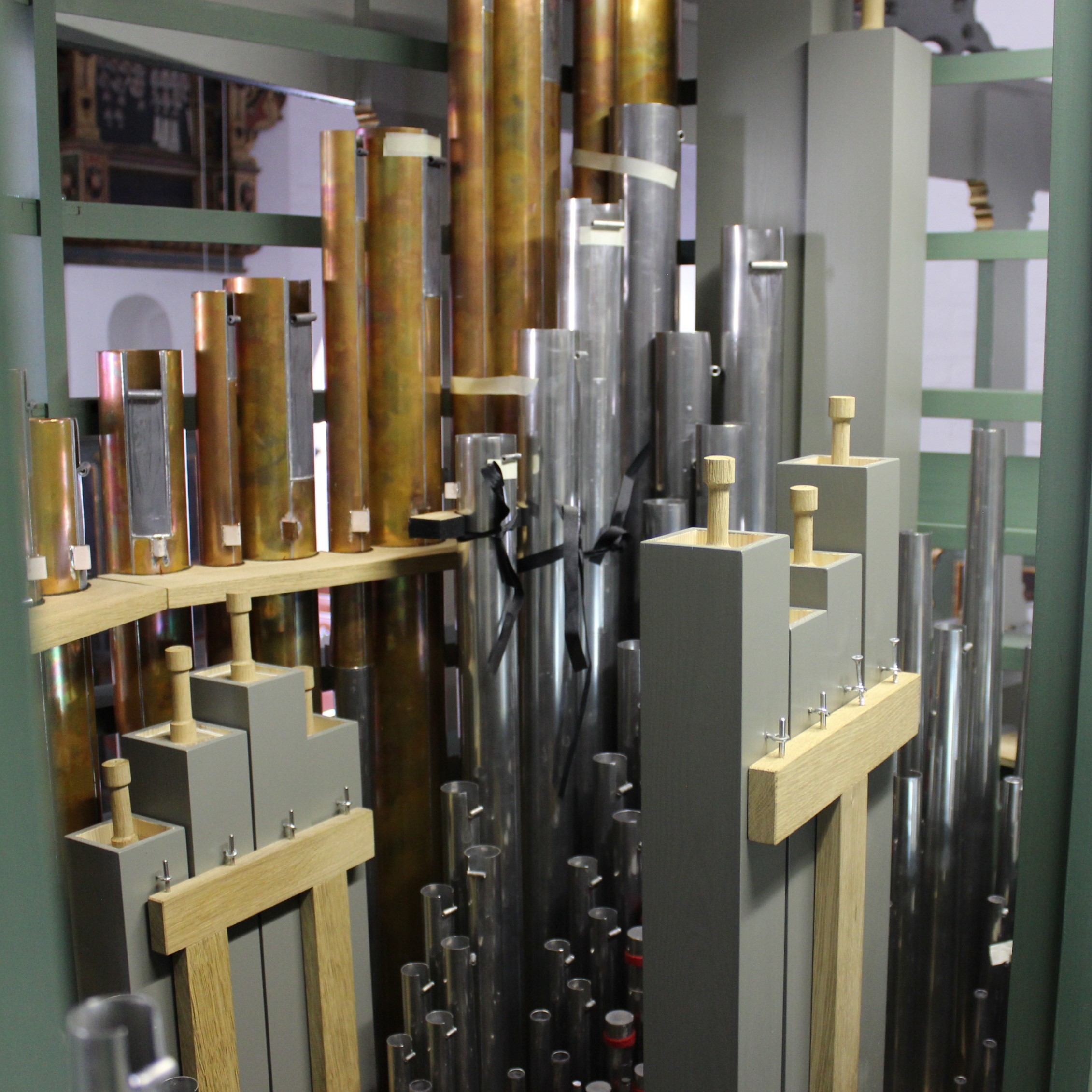 Orgeldele til Vrensted Kirkes orgel og intonaton af piber til Budolfi Kirkes kororgel