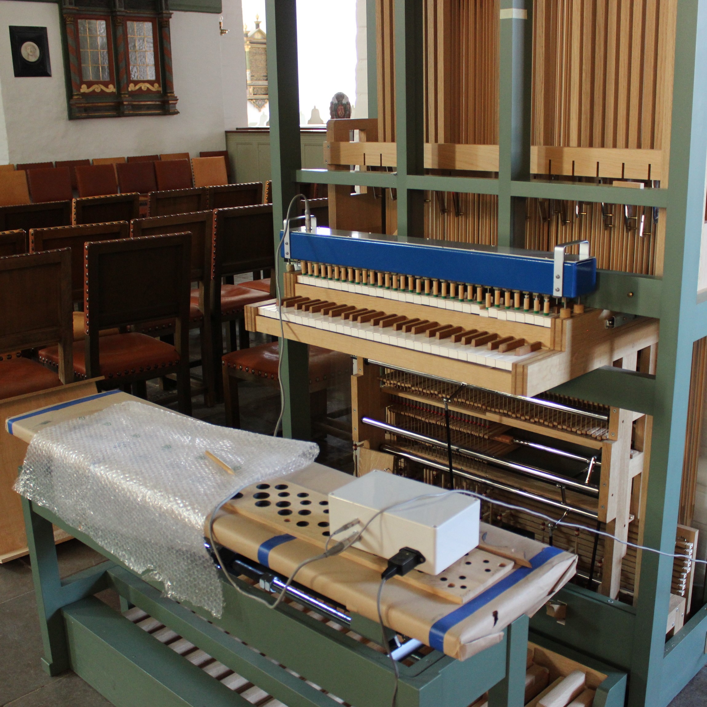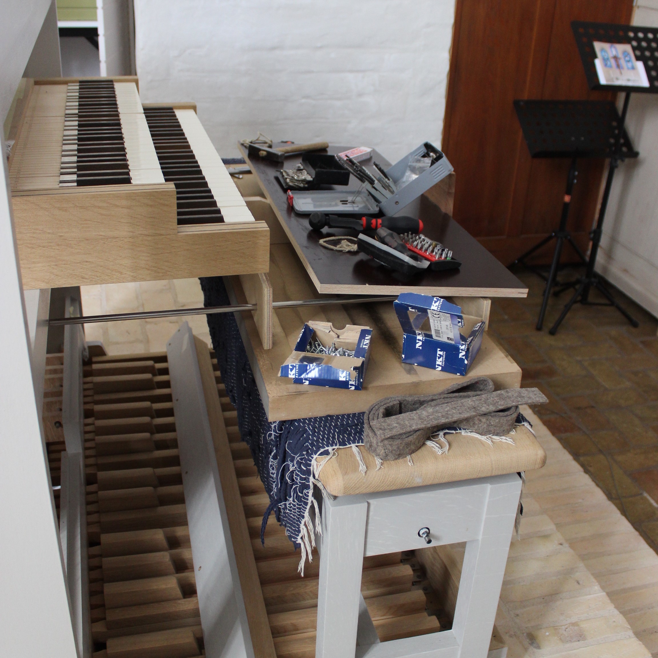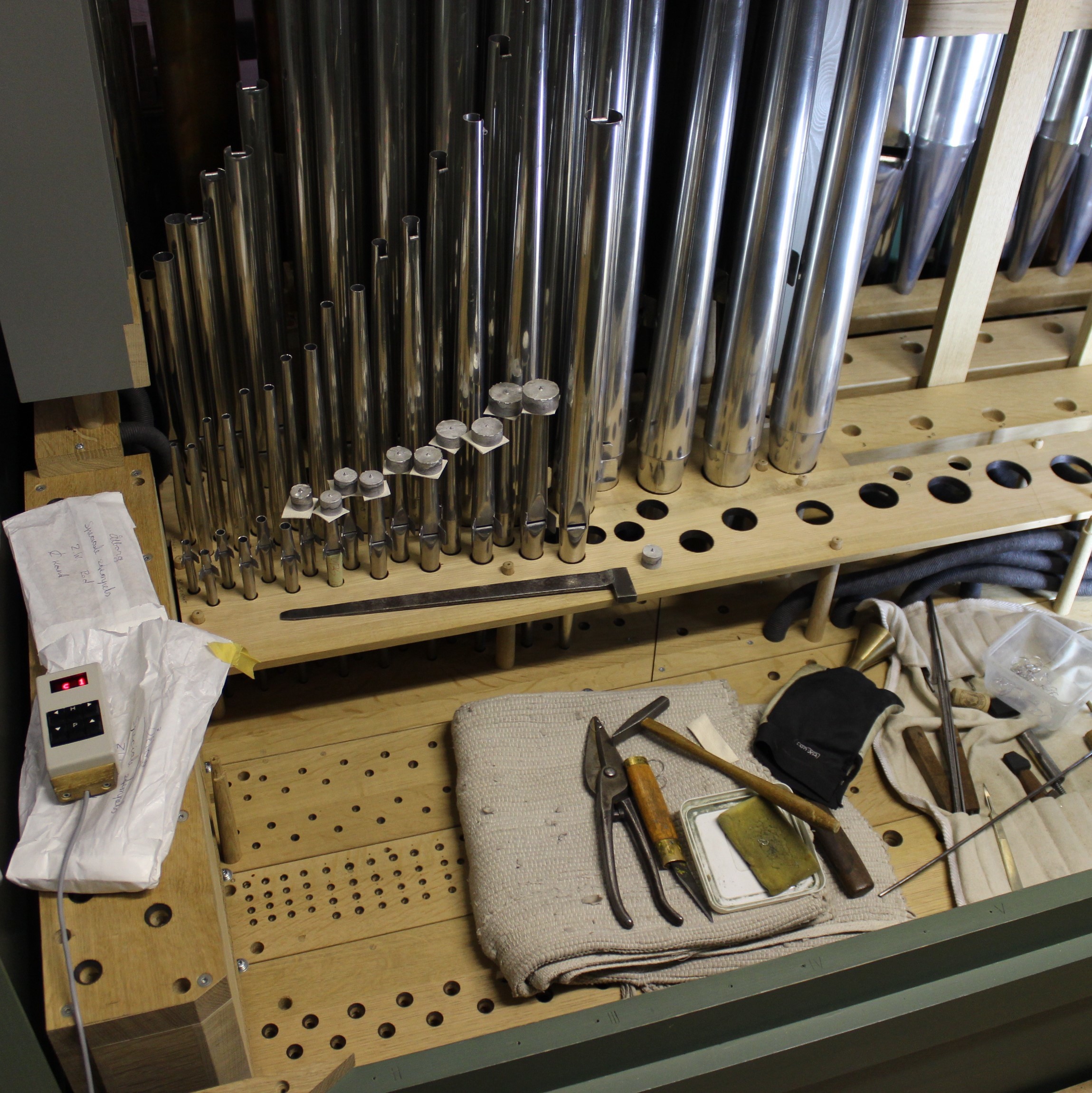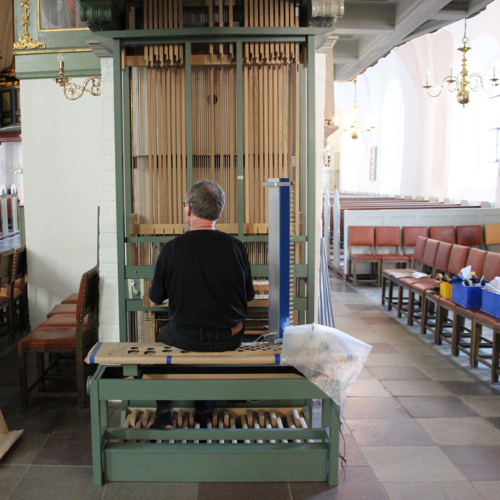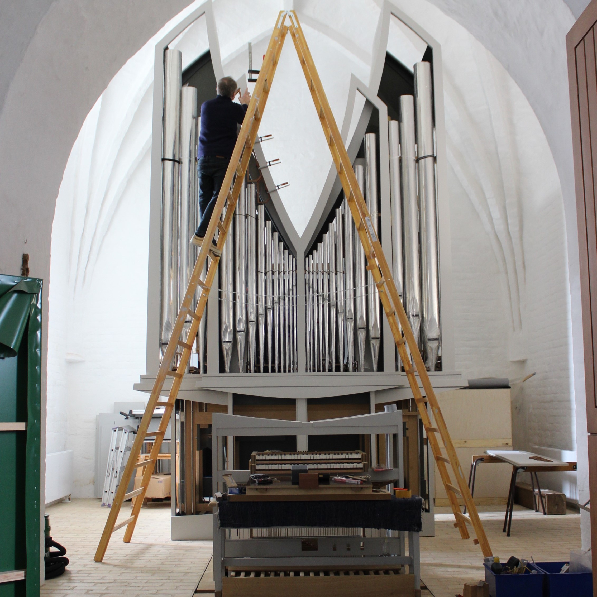 Orgeldele til Vrensted Kirkes orgel og intonaton af piber til Budolfi Kirkes kororgel