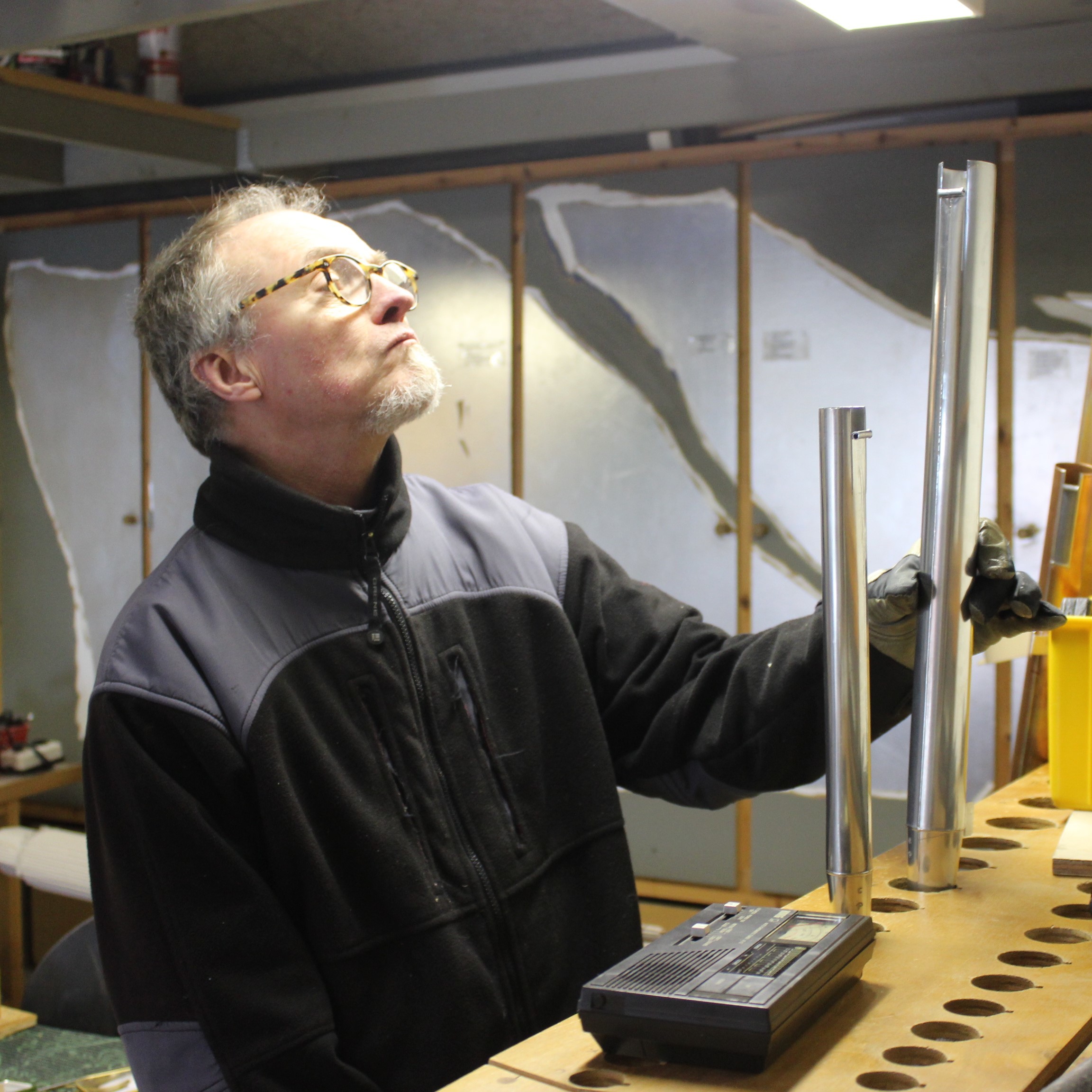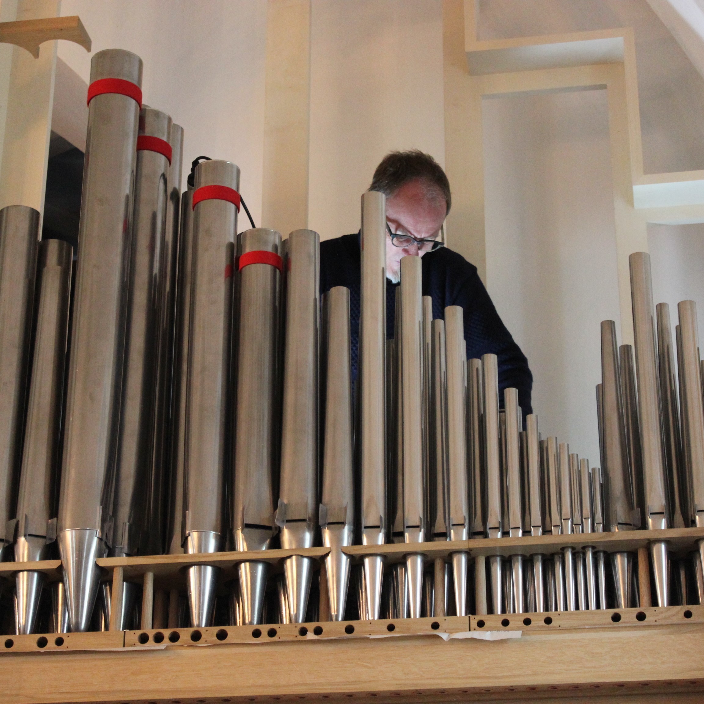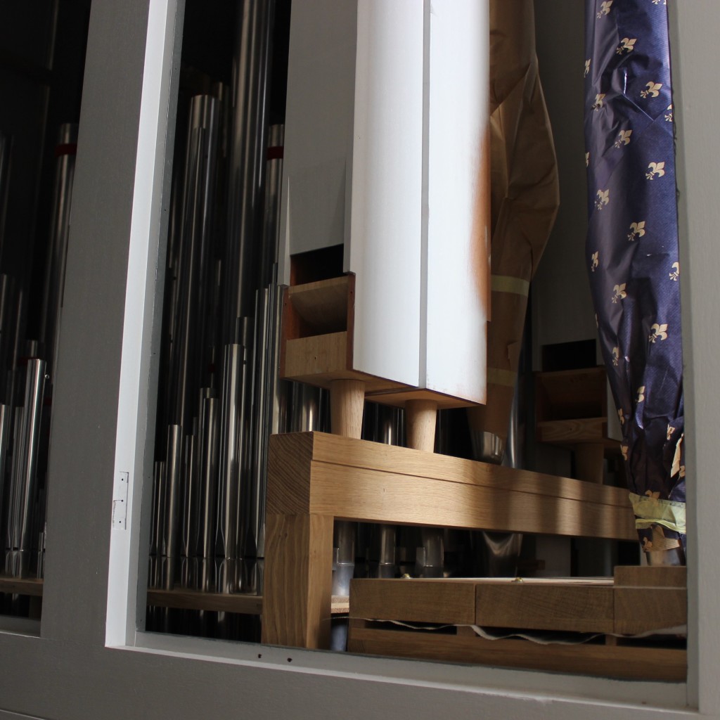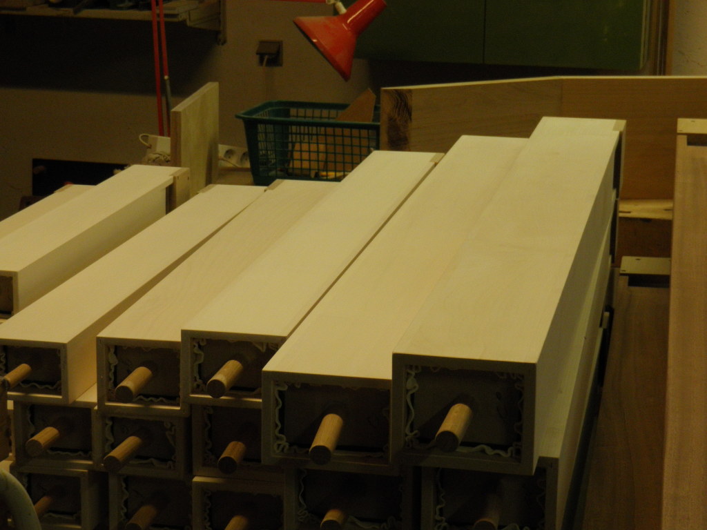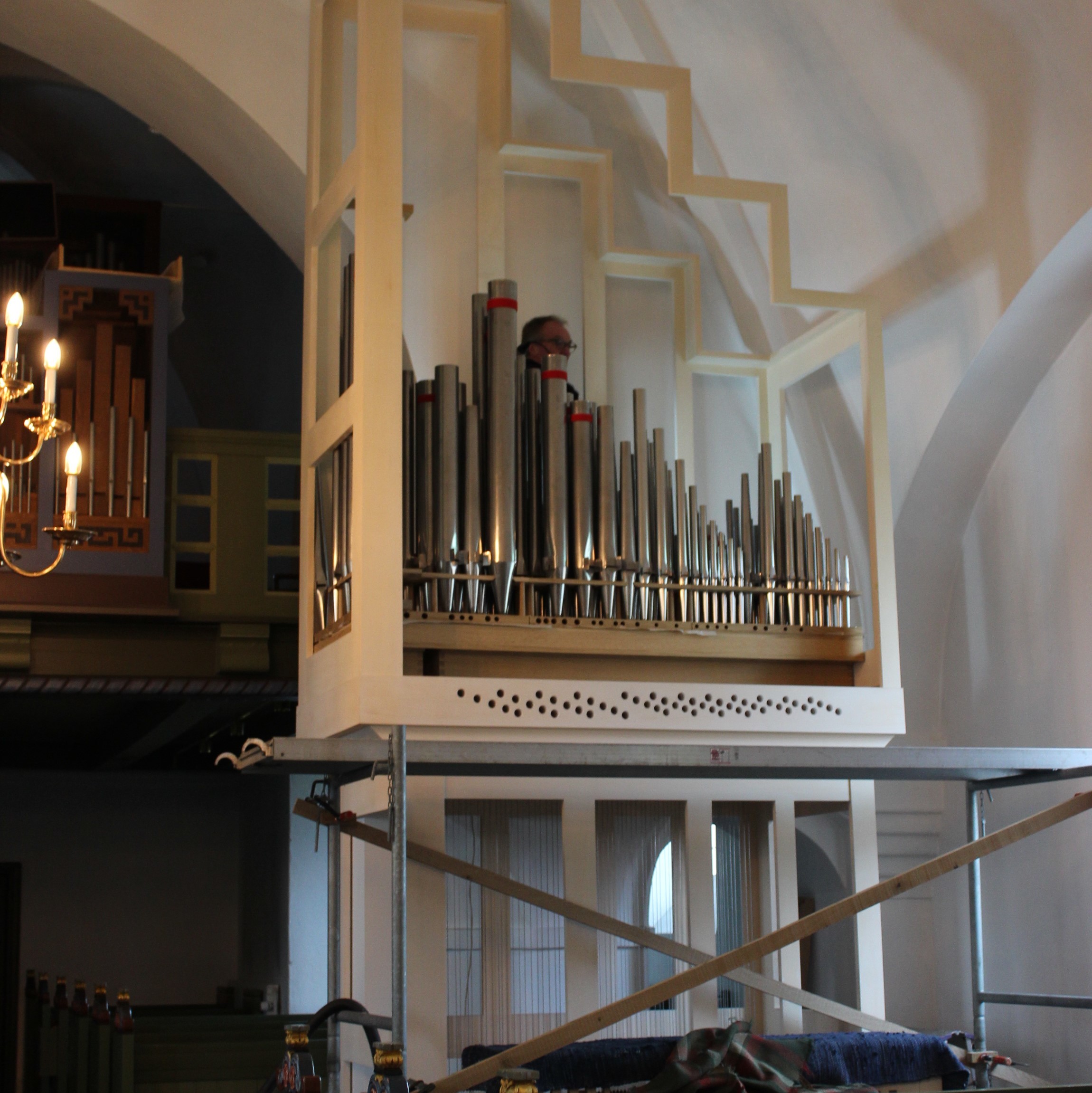 Orgeldele til Vrensted Kirkes orgel og intonaton af piber til Budolfi Kirkes kororgel